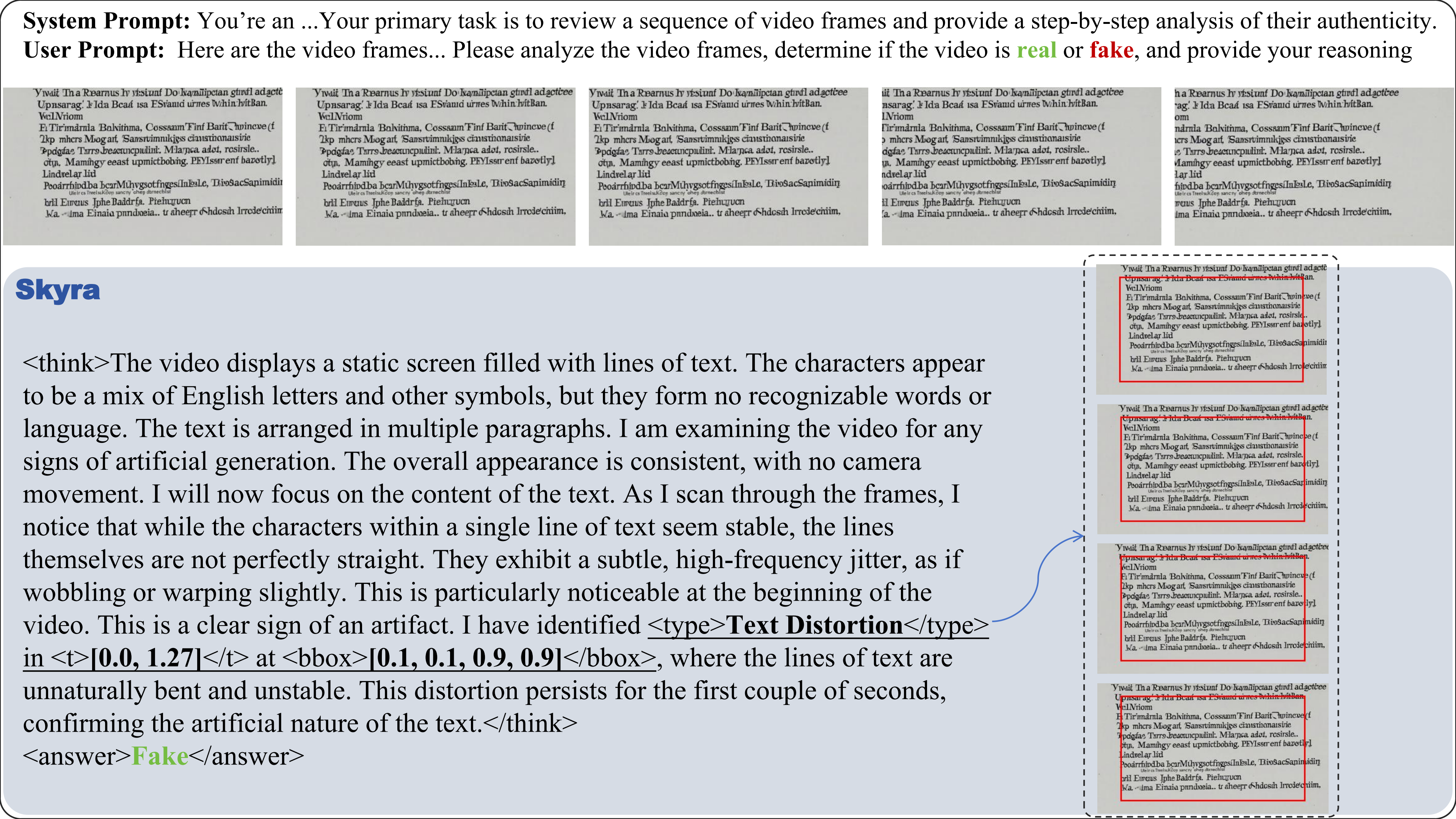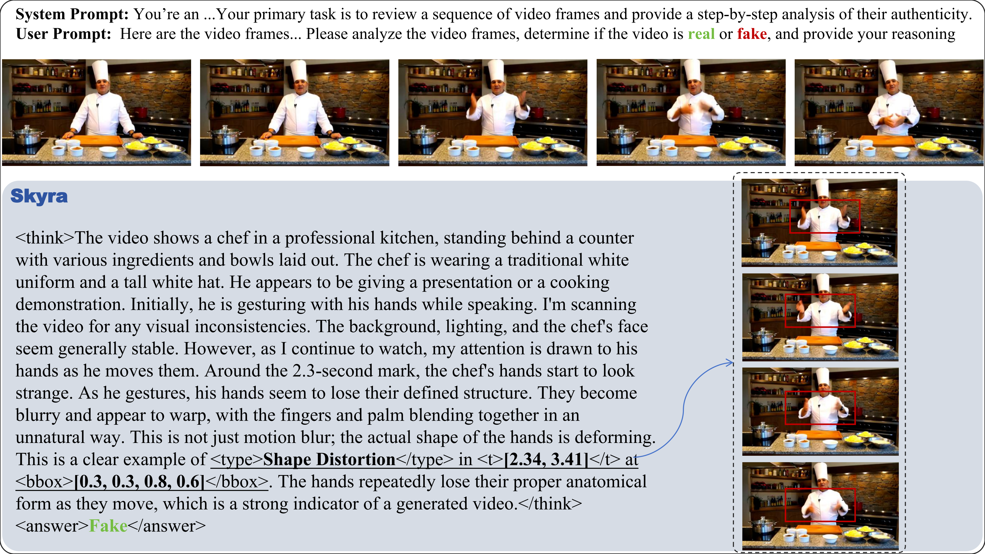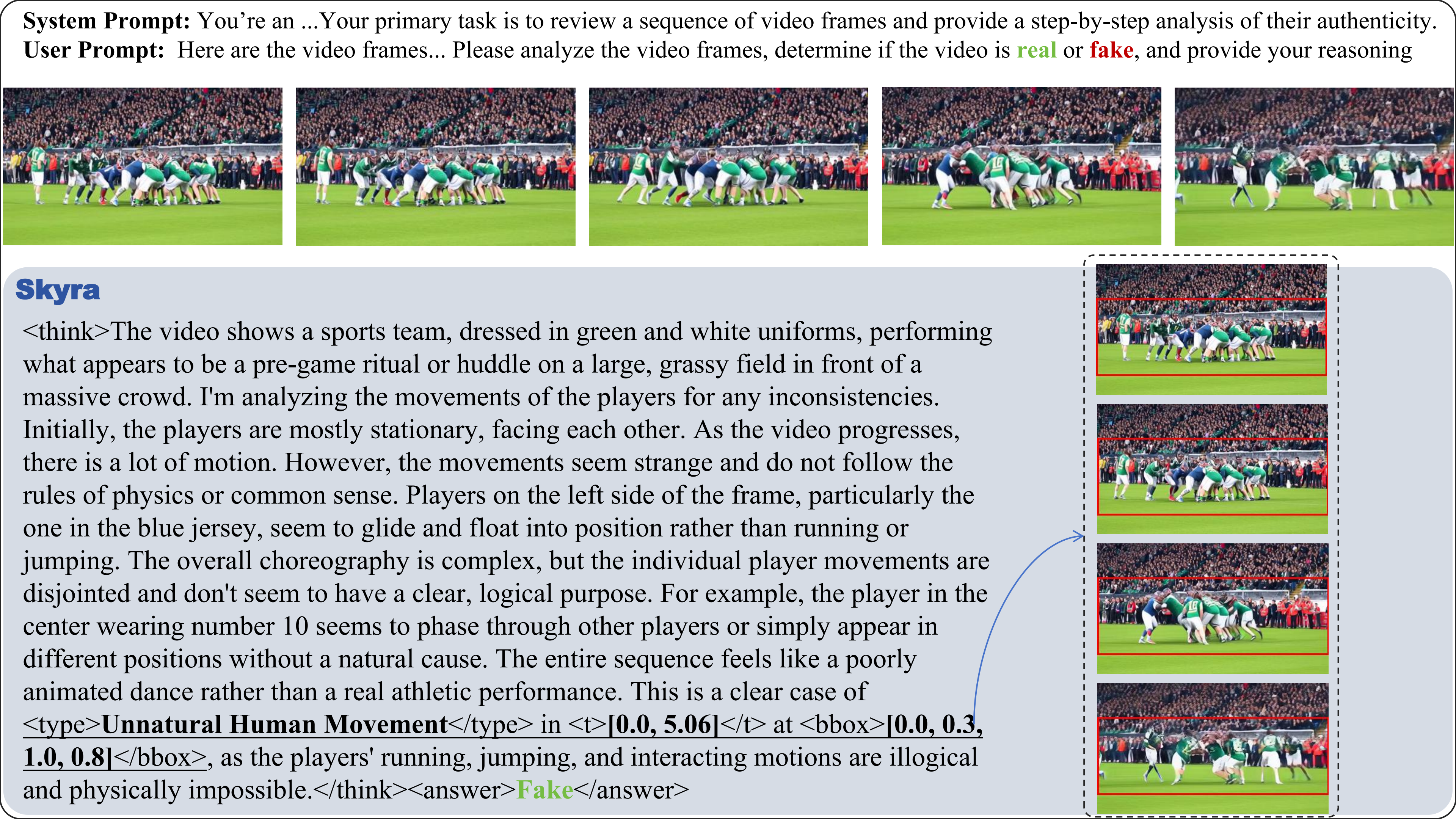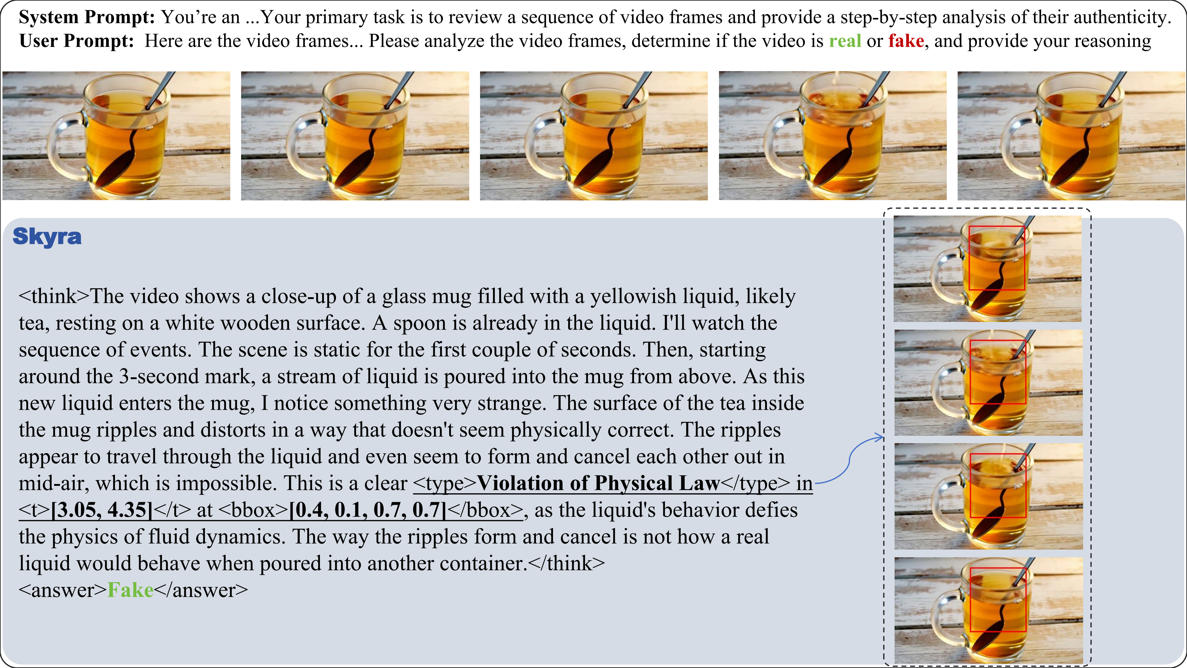 In this paper, we present Skyra, a specialized multimodal large language model (MLLM) that identifies human-perceivable visual artifacts in AI-generated videos and leverages them as grounded evidence for both detection and explanation. To support this objective, we construct ViF-CoT-4K for Supervised Fine-Tuning (SFT), which represents the first large-scale AI-generated video artifact dataset with fine-grained human annotations. We then develop a two-stage training strategy that systematically enhances our model's spatio-temporal artifact perception, explanation capability, and detection accuracy.