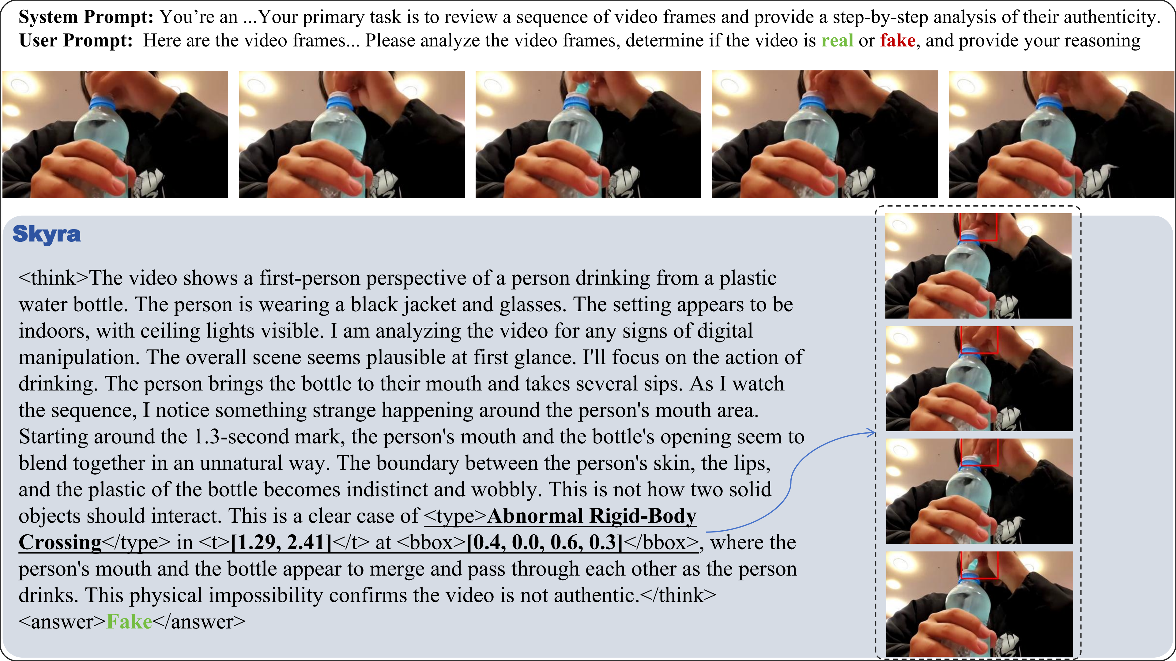 Extensive experiments demonstrate that Skyra surpasses existing methods across multiple benchmarks, providing valuable insights for advancing explainable AI-generated video detection.
